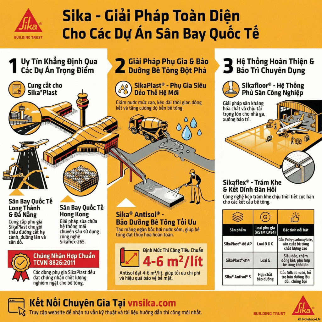 SIKA là tập đoàn hàng đầu thế giới về hóa chất xây dựng, hiện diện tại hơn 100 quốc gia. SIKA Việt Nam hoạt động từ năm 1993, chuyên cung cấp các giải pháp toàn diện như chống thấm, phụ gia bê tông, keo dán gạch, vữa sửa chữa… đáp ứng tiêu chuẩn kỹ thuật cao cho mọi công trình lớn nhỏ trên cả nước. Để tìm hiểu thêm về sản phẩm và giải pháp SIKA, quý khách có thể truy cập website: vnsika.com – kênh thông tin chuyên sâu về sản phẩm SIKA tại Việt Nam, do đối tác phân phối chính thức Hóa chất PT phát triển và vận hành.