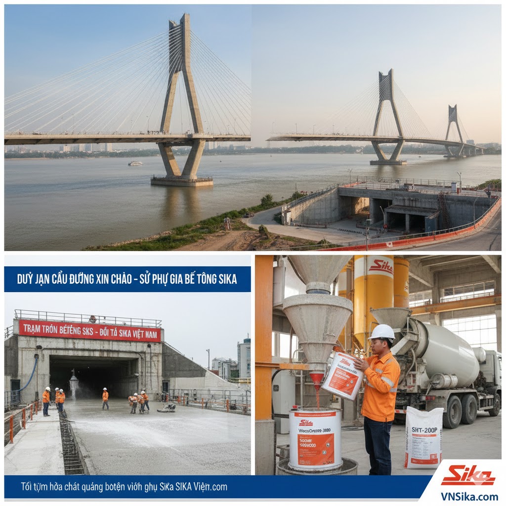 | Bê tông khối lớn (Móng bè, đập thủy điện) | Sika ViscoCrete + Sika Retarder | Giảm nhiệt thủy hóa, tránh nứt nhiệt, duy trì độ sụt lâu. |