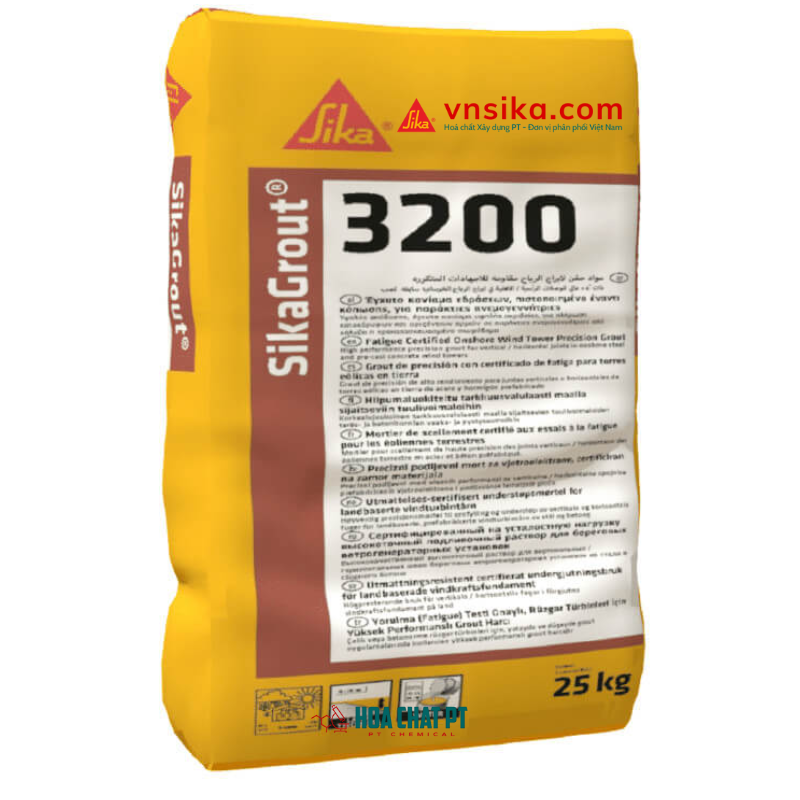 SikaGrout-3200 VN là vữa rót gốc xi măng 1 thành phần, bù co ngót, tự chảy và đóng rắn siêu nhanh. Được thiết kế đặc biệt để chịu tải trọng động và kháng mỏi cho các trụ tháp điện gió trên bờ và gần bờ, sản phẩm đạt cường độ nén cực cao (lên đến 100 MPa) chỉ sau 28 ngày. Đây là lựa chọn số 1 cho các công trình yêu cầu độ chính xác và khả năng chịu lực khắt khe nhất hiện nay.